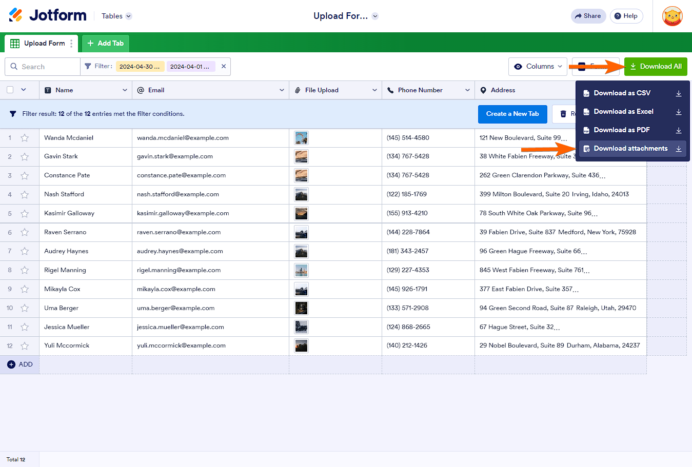 You can also download files from a specific time range by applying filters in Jotform Tables. This makes it easy to focus only on the submissions you need. You’ll just need to do this: