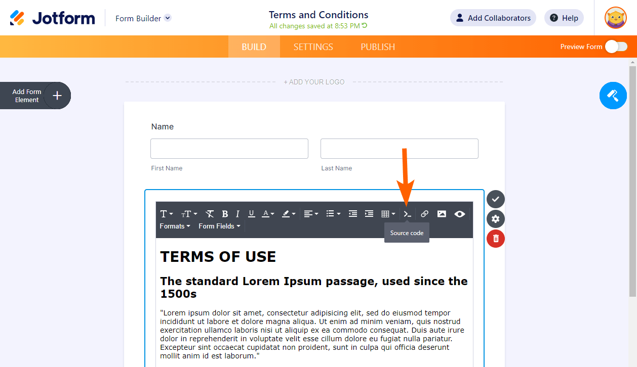 - Di Pembuat Formulir, klik tombol Tambahkan Elemen Formulir.