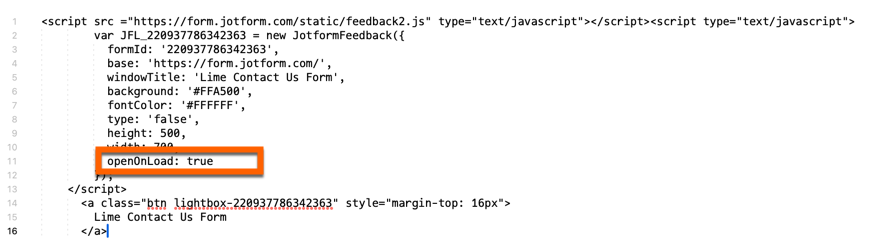 - Diperlukan sedikit perubahan pada kode tersebut untuk membuka formulir Lightbox secara otomatis; cukup ubah parameter openOnLoad menjadi true. Letaknya setelah pengaturan width, dan akan terlihat seperti ini openOnLoad: true.