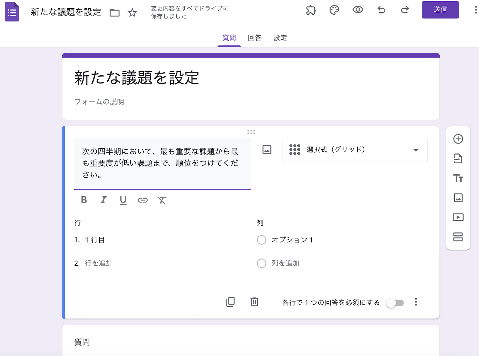 Googleフォームで順位付けの質問はできるのか?と疑問に思っている方もいるでしょう。そんな方のために、Googleフォームに順位付けの質問を追加する方法を順を追ってご説明します: