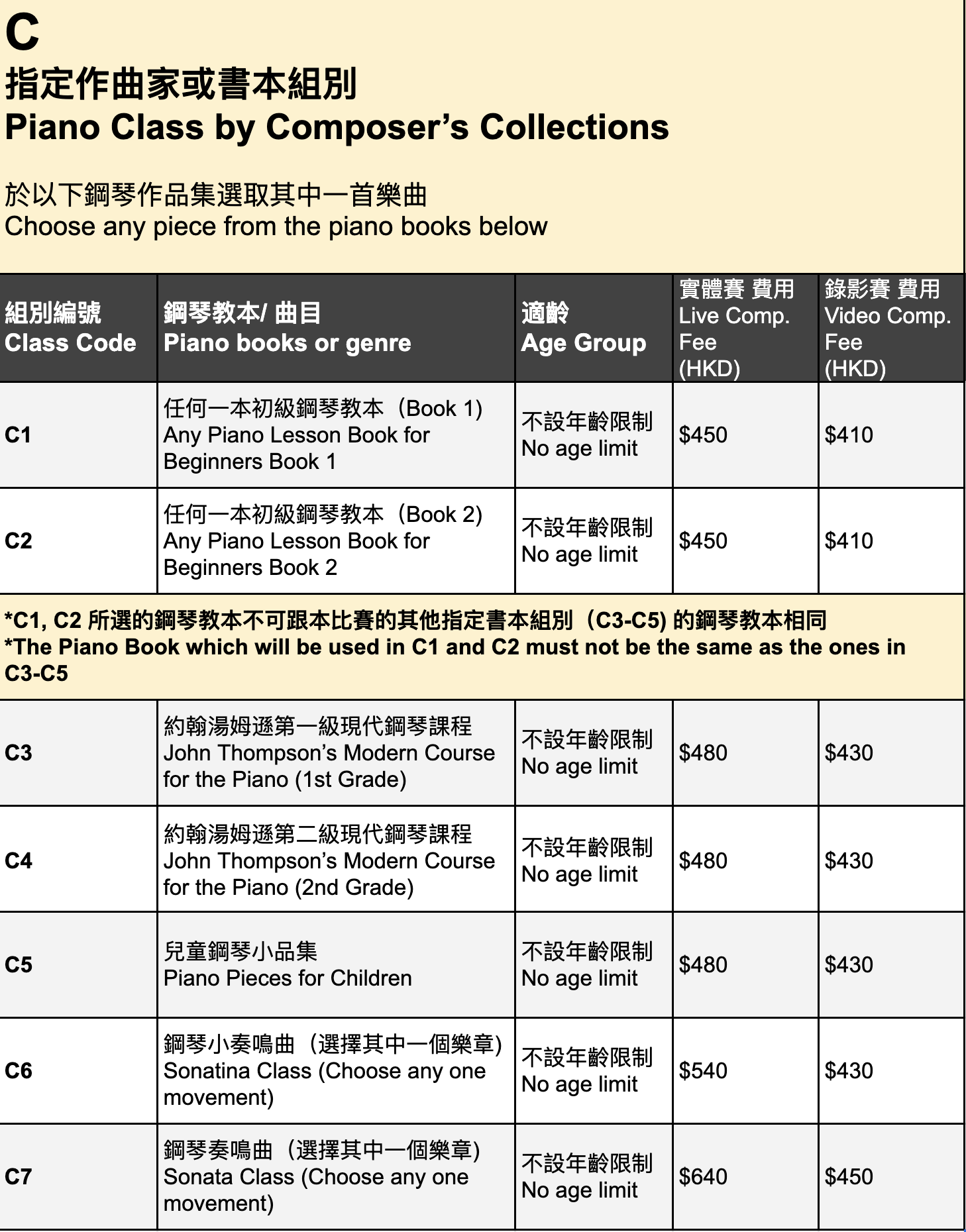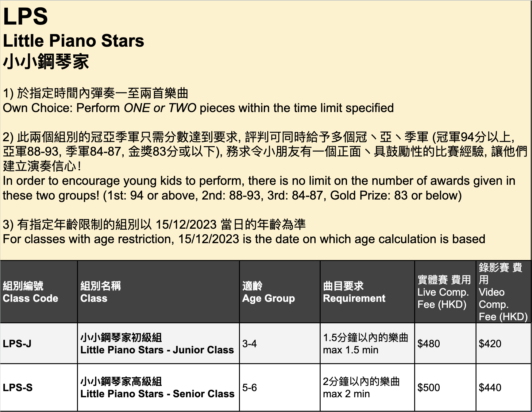 ** 小小鋼琴家初級組 & 小小鋼琴家高級組除外,此兩組有另外評分的標準 / except LPS-J & LPS-S which has its own grading system