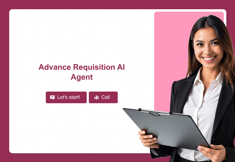 The Advance Requisition AI Agent is an interactive assistant designed to streamline the requisition process for organizations. This AI Agent automates data collection and enhances communication, ensuring that essential details for purchase requests are gathered efficiently through an engaging interface. By minimizing errors in data entry, it boosts operational efficiency, making it an invaluable asset for businesses looking to improve their procurement processes.