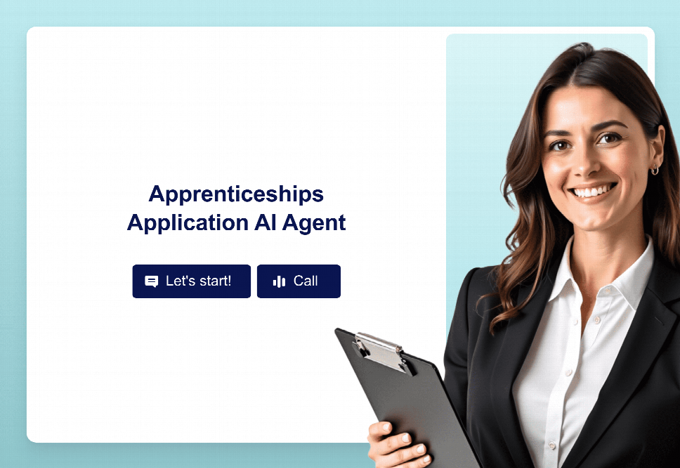 The Apprenticeships Application Assistant simplifies the application process for apprenticeship programs through engaging conversations, collecting vital applicant information efficiently.