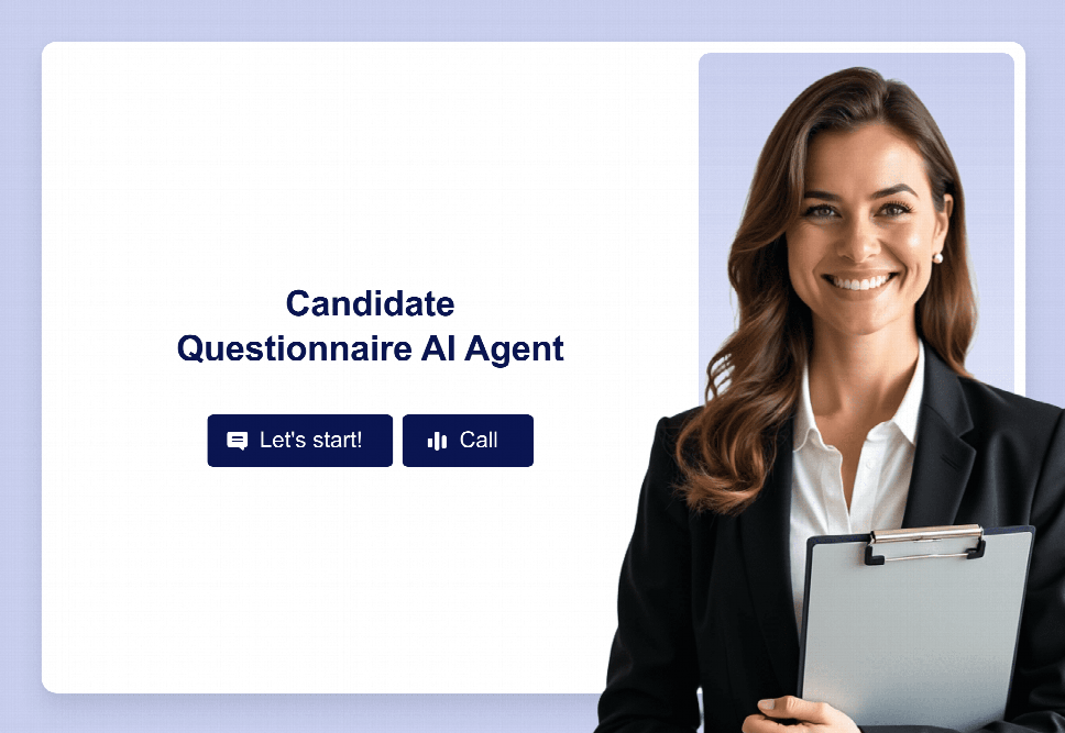 The Candidate Questionnaire Assistant is an interactive assistant that simplifies the collection of essential information from job applicants. This AI Agent engages candidates in a conversational format, efficiently gathering vital data such as qualifications, work experience, and personal insights, which enhances the recruitment process and facilitates a more effective selection of candidates.