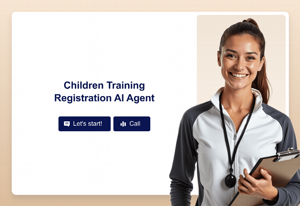 The Children Training Registration Assistant is a conversational assistant crafted to simplify the registration process for various children's training programs. This AI Agent engages parents and guardians in an interactive dialogue, collecting crucial details such as participant information, preferred training sessions, and any special requirements, ensuring a seamless and user-friendly registration experience. By transforming traditional forms into dynamic conversations, this AI Agent enhances engagement and streamlines data collection, making the registration process efficient and enjoyable for all participants.