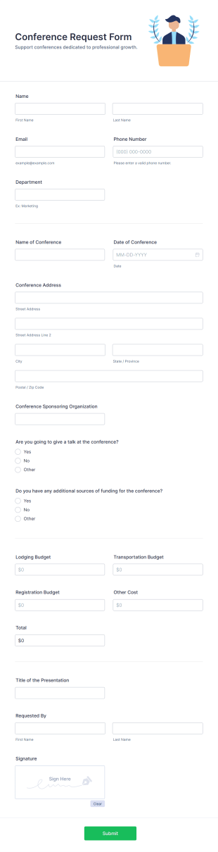 The Conference Request AI Agent is an interactive assistant that simplifies the process of submitting conference requests. This AI Agent captures essential details such as attendee information, conference specifics, and budgetary needs through an engaging conversational interface. By streamlining the gathering of critical information, it ensures that all necessary data is collected efficiently and accurately, enhancing the overall event planning experience.