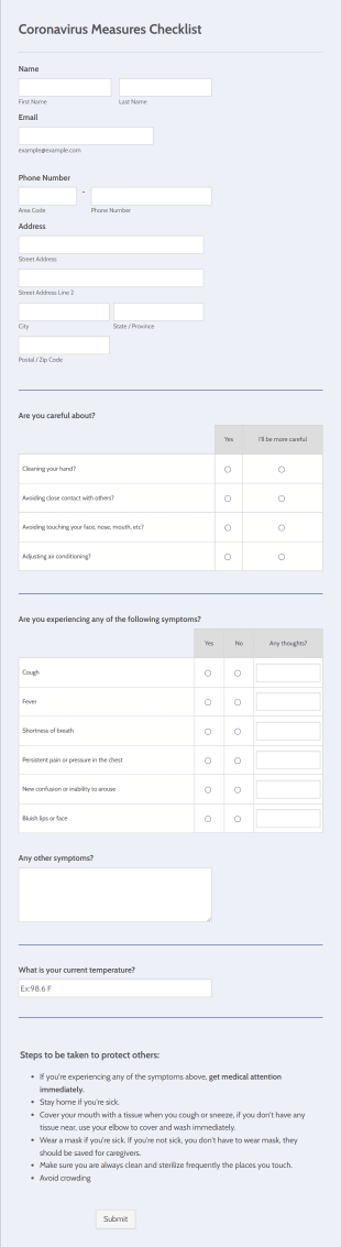 Coronavirus Measures Checklist Assistant