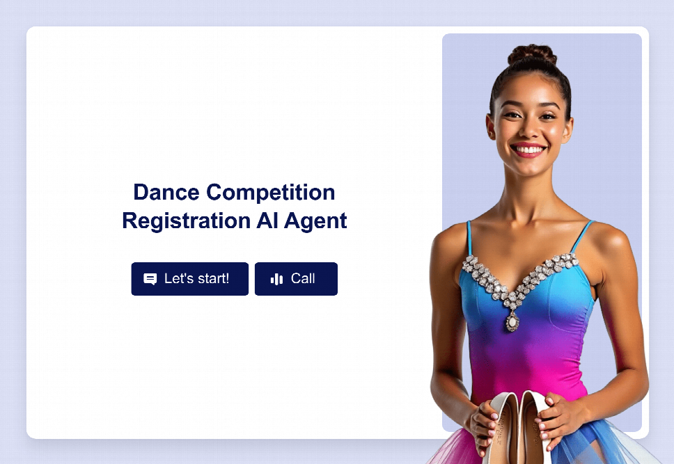 The Dance Competition Registration Assistant simplifies the enrollment process for dance competitions, warmly interacting with dancers and their guardians to collect essential details.