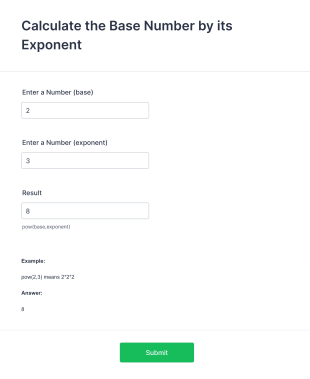 This AI Agent effectively collects data such as the base number and exponent from users, generating accurate results based on the input provided. It features a calculation field that performs the exponentiation operation, displaying the result clearly. Additionally, the agent's design allows for customization, ensuring it aligns with branding and user preferences while offering a seamless user experience across devices.