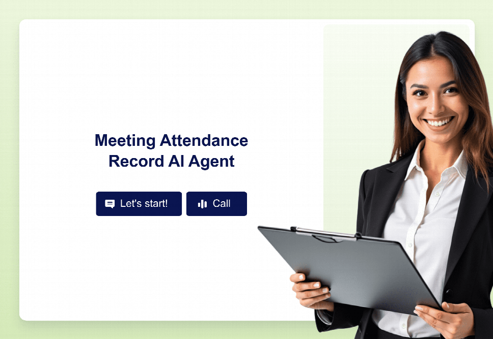 The Meeting Attendance Record AI Agent is an interactive assistant designed to streamline the process of tracking attendance during meetings. This AI Agent engages participants in a friendly manner, collecting essential information to ensure accurate attendance records and enhance accountability for organizations of all sizes. By transforming traditional form filling into dynamic conversations, it simplifies the attendance process, making it efficient and user-friendly.