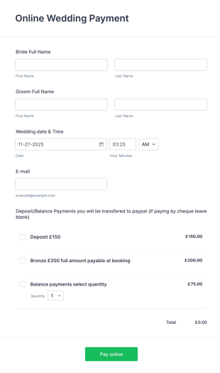 This AI Agent collects essential information such as bride and groom names, wedding date and time, email addresses, and payment amounts. It integrates seamlessly with payment systems to facilitate transactions, while customizable features allow couples to tailor the agent’s appearance and responses to fit their wedding theme. Additionally, it can handle multiple payment methods and provide real-time updates on payment statuses, ensuring a hassle-free experience for all parties involved.