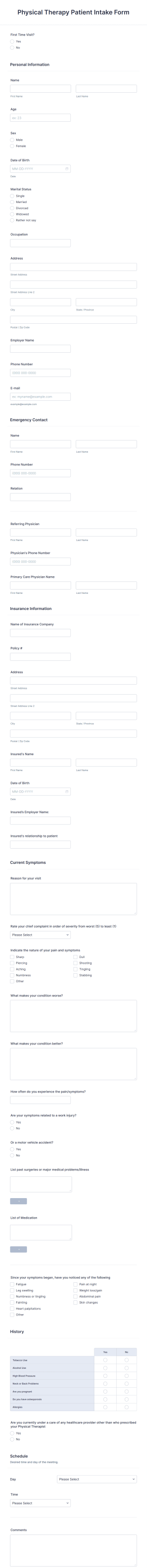 Healthcare professionals and administrative staff in physical therapy clinics can greatly benefit from this AI Agent template. It serves those who need to gather patient information efficiently and ensure a smooth intake process. Key users include: