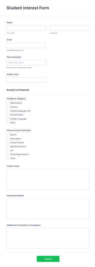 Various educational professionals can benefit from the Student Interest AI Agent. This template is particularly useful for those looking to enhance student engagement and streamline data collection. Key users include: