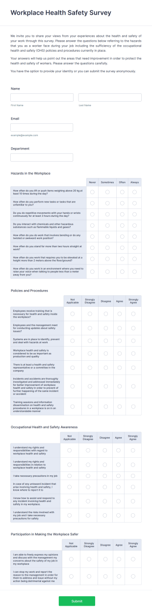 Organizations committed to enhancing workplace safety and health can greatly benefit from this AI Agent template. It is particularly useful for professionals responsible for health and safety management. Key users include: