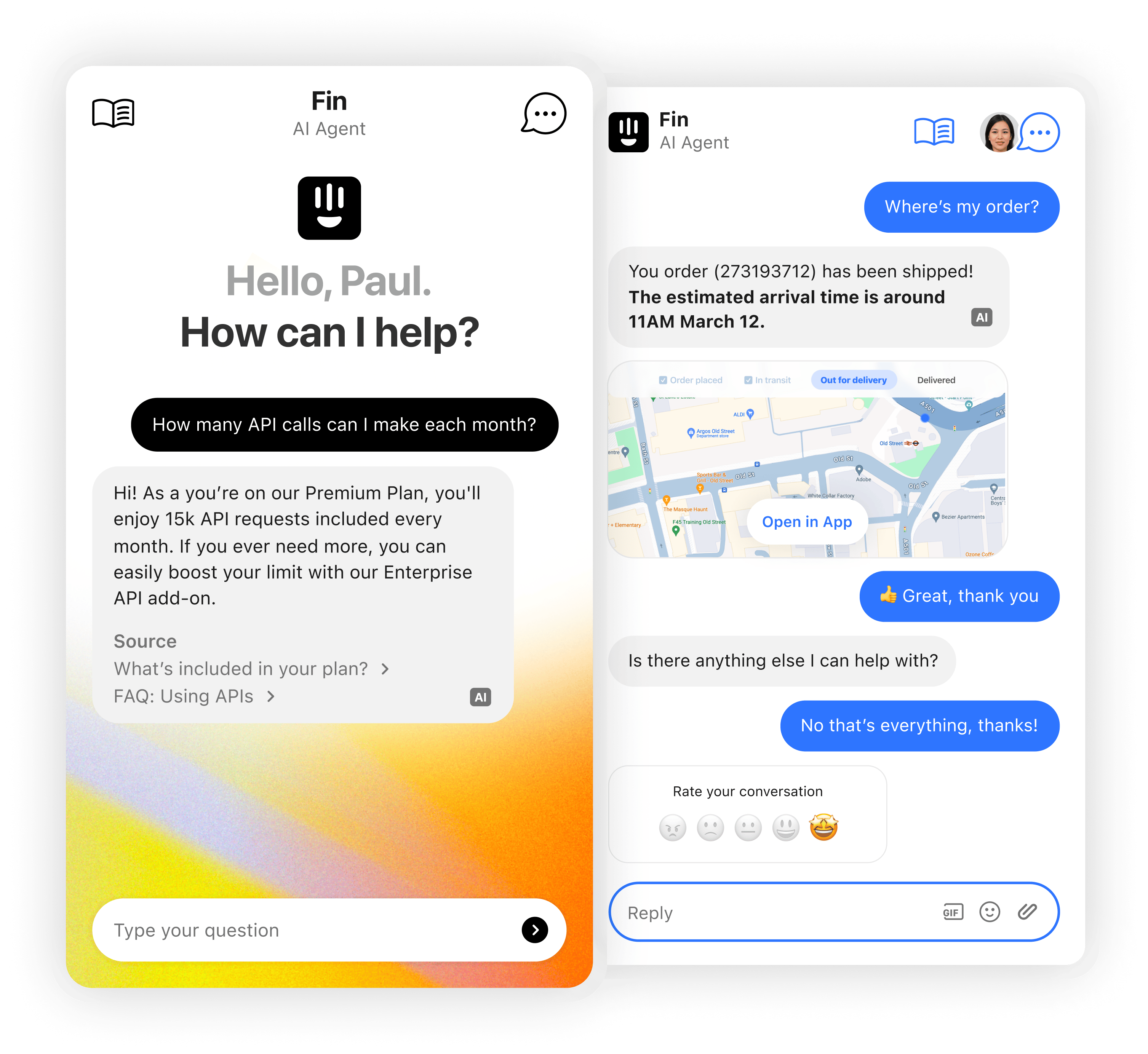 Intercom is an AI-powered customer service platform with three key services. The AI Agent is a chatbot that offers instant answers to customers 24/7; the AI Copilot provides internal assistance for support agents; and the AI Analyst offers insights and recommendations for leaders. The AI Agent chatbot delivers human-quality service, personalizing every interaction and immediately adapting to meet a customer’s needs.