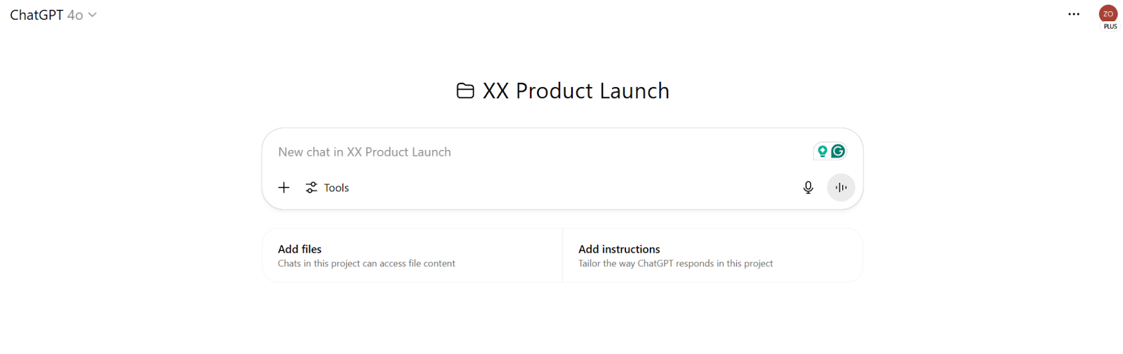 - Data management: So the AI can best support you, use the Projects feature to add files related to your product, and then tell ChatGPT to refer to the files before it constructs a response.