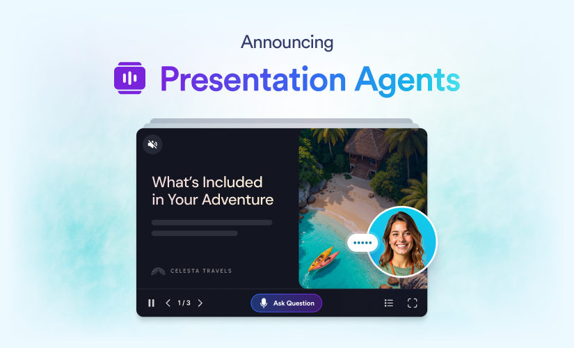 We’re excited to debut Presentation Agents, our new AI product designed to turn humdrum slide decks into engaging presentation experiences. Presentation Agents speak, listen, adapt, and respond to viewers — and are available 24-7.