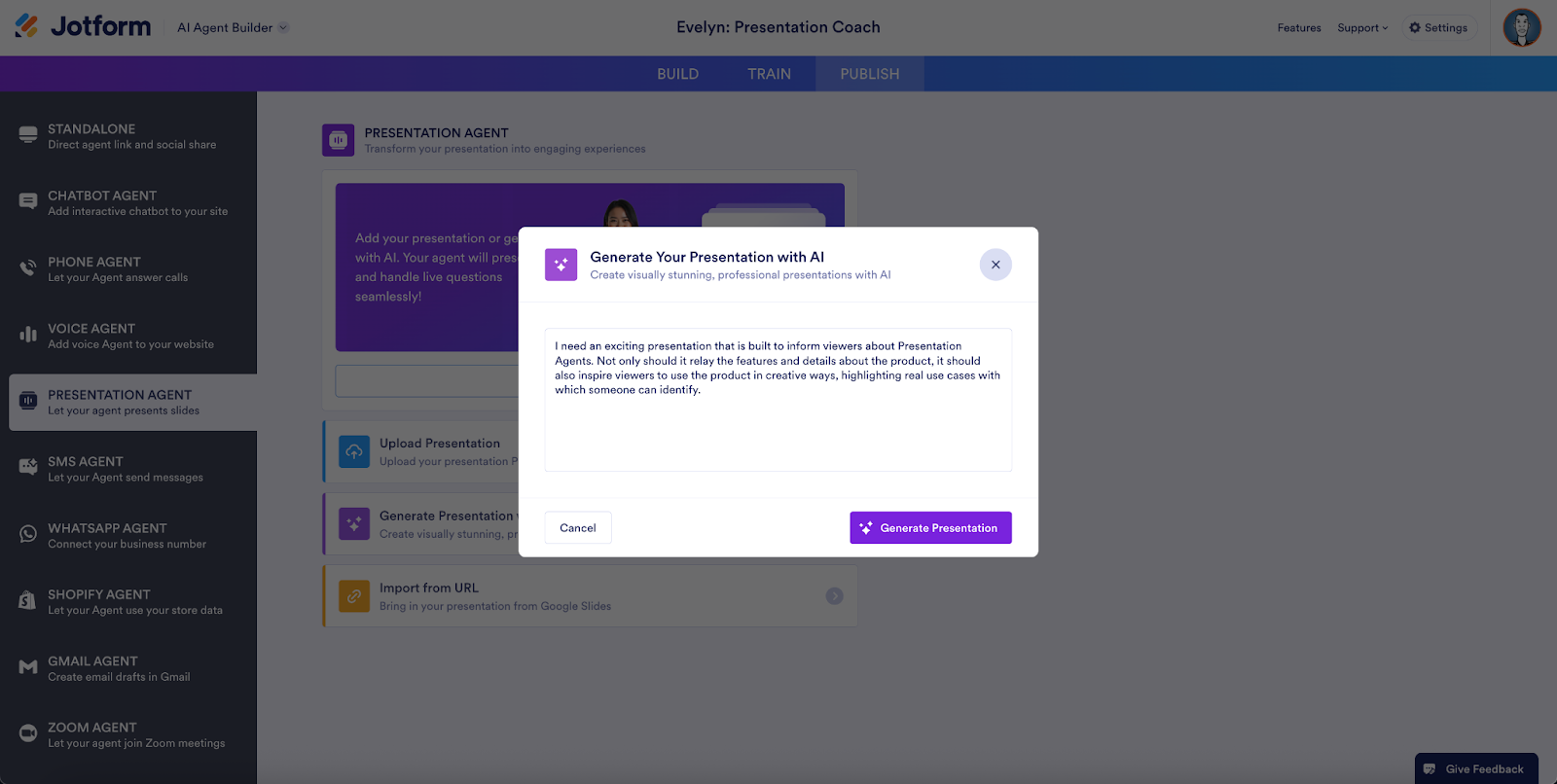 Let’s walk through creating a Presentation Agent.