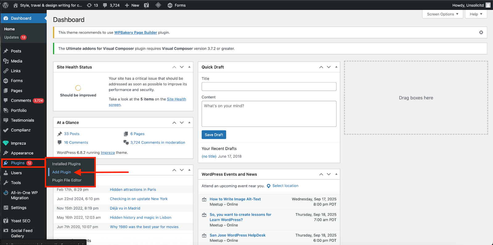 In the sidebar of your WordPress dashboard, click Plugins, then click Add Plugin.
