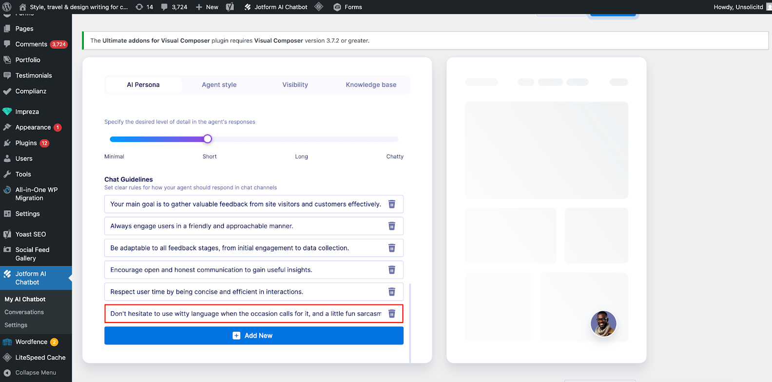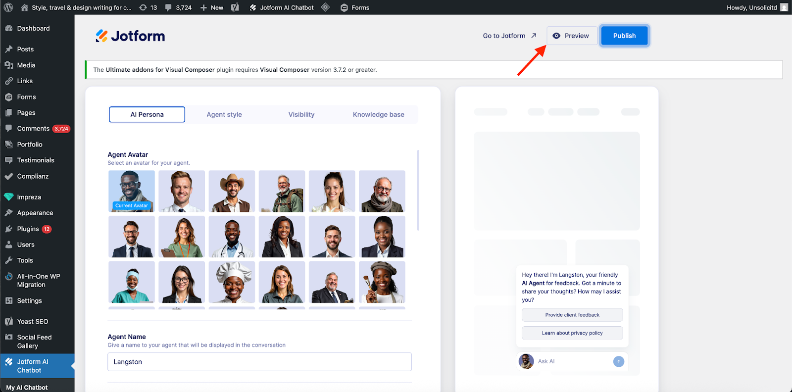 Even after your agent has been published on your site, you can still go into your WordPress plugin at any time to adjust the agent’s style or update its knowledge base.