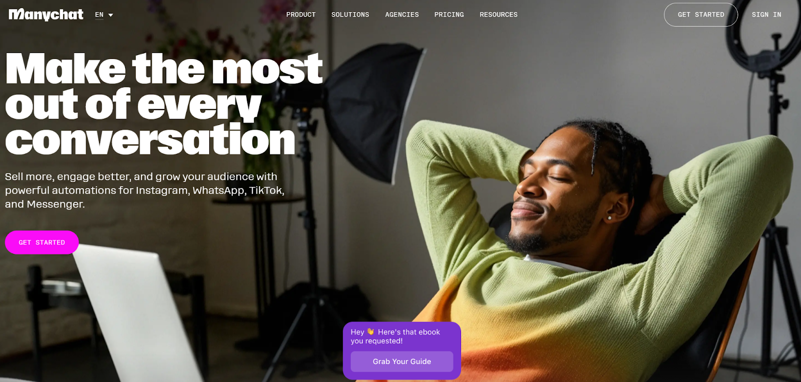 ManyChat is a popular chatbot platform known for its ease of use and strong multichannel capabilities. It integrates directly with social platforms like Instagram, WhatsApp, and Facebook Messenger, making it highly effective for customer engagement and e-commerce. It’s best suited for small businesses and online retailers that want to boost sales and support customers on social media.
