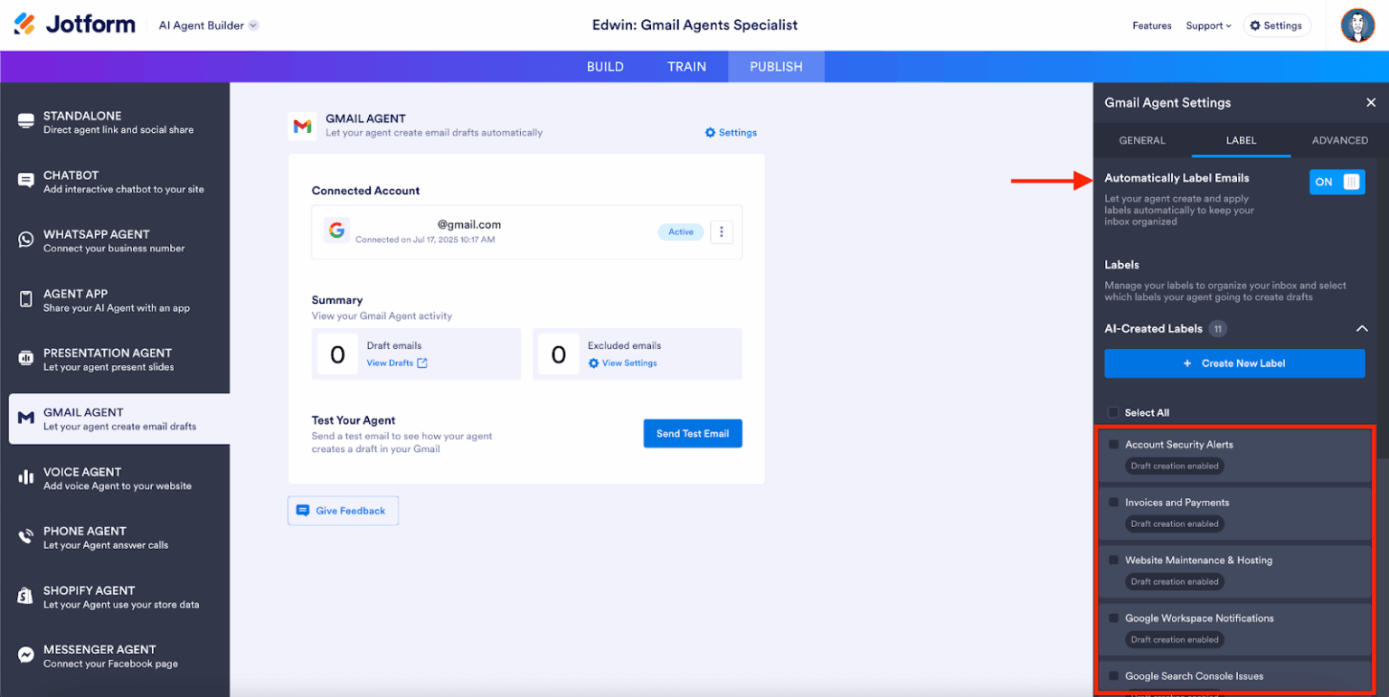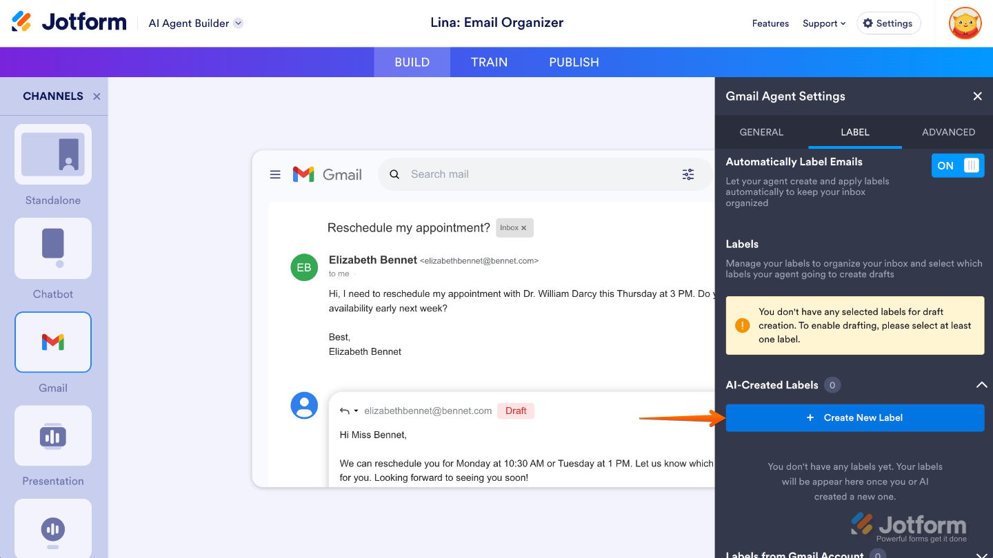 1. Jotform Gmail Agent: Best for AI-powered Gmail support