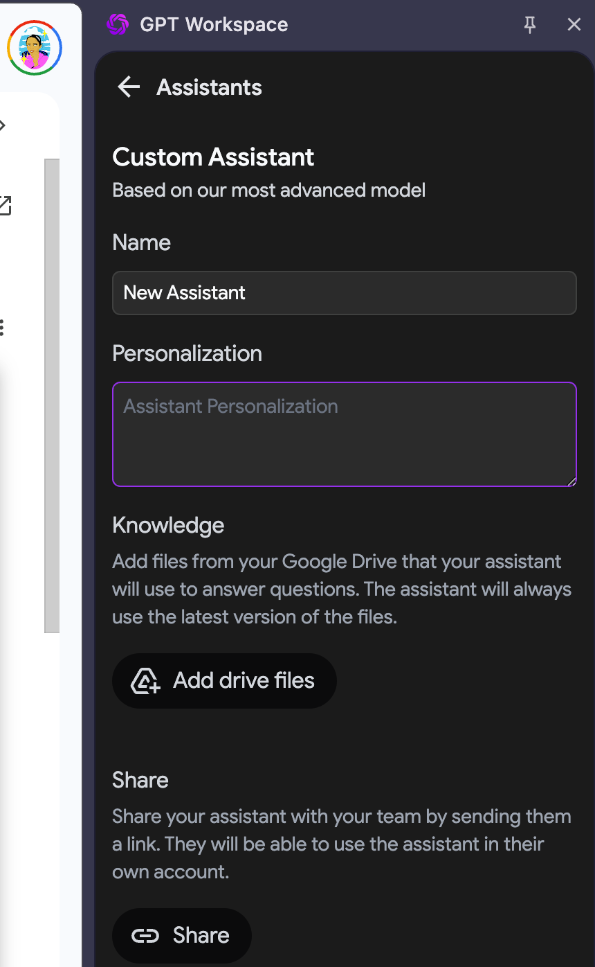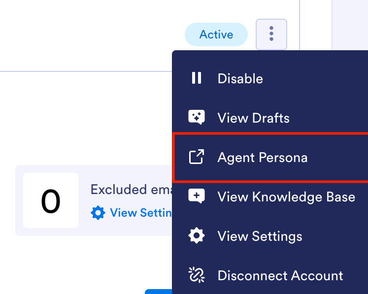 Modify your digital personality by clicking on the three dots next to your connected Gmail account and selecting Agent Persona.