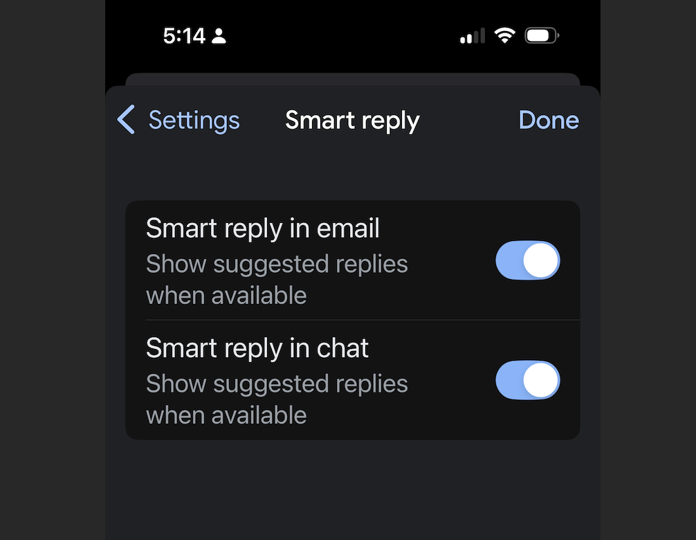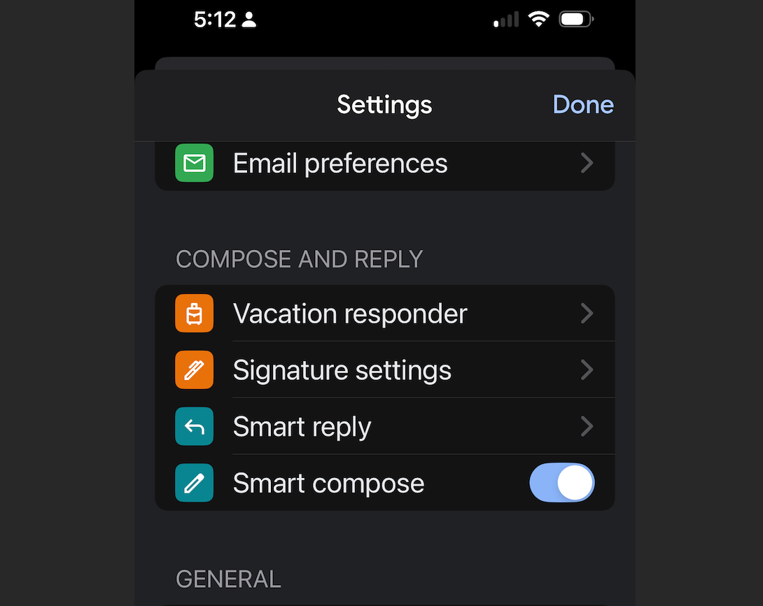 You can also turn off Smart Compose through the Gmail app on your smartphone. Use these instructions: