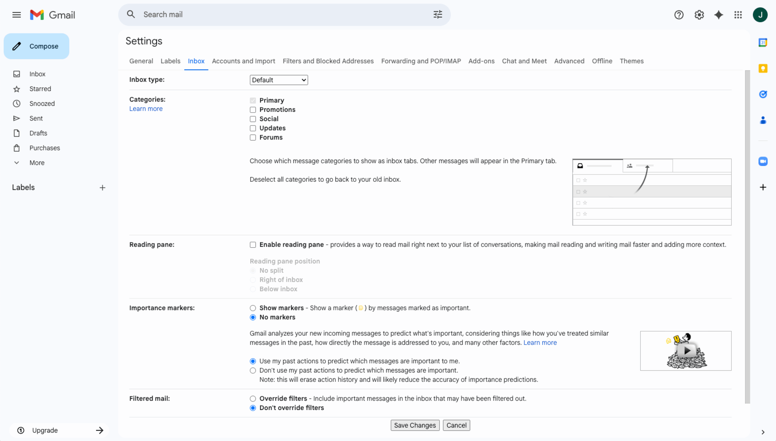 Gmail automatically categorizes your emails into tabs, including Primary, Social, and Promotions inboxes, using algorithms. The process doesn’t always get the categories correct, though. So some of your important emails might be categorized into your Social or Promotions inboxes, leading you to overlook them. You can turn off this setting by eliminating those inboxes and switching to a single inbox: