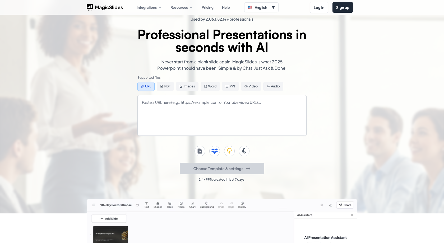 The ability to generate presentations from a range of input sources is what sets Magic Slides apart. YouTube video links, PDFs, Word documents, web pages, plain text, and images — you name it. MagicSlides pulls structured content from various formats to create professional-looking slide decks for your presentations. This versatility is useful for educators and researchers who often need to present complex material from multiple sources without manually piecing everything together.