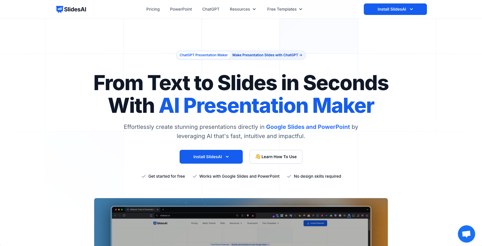 | Instant AI | Full slide generation, rich Google Slides AI templates, easy to use | Less automated customization after slide generation |