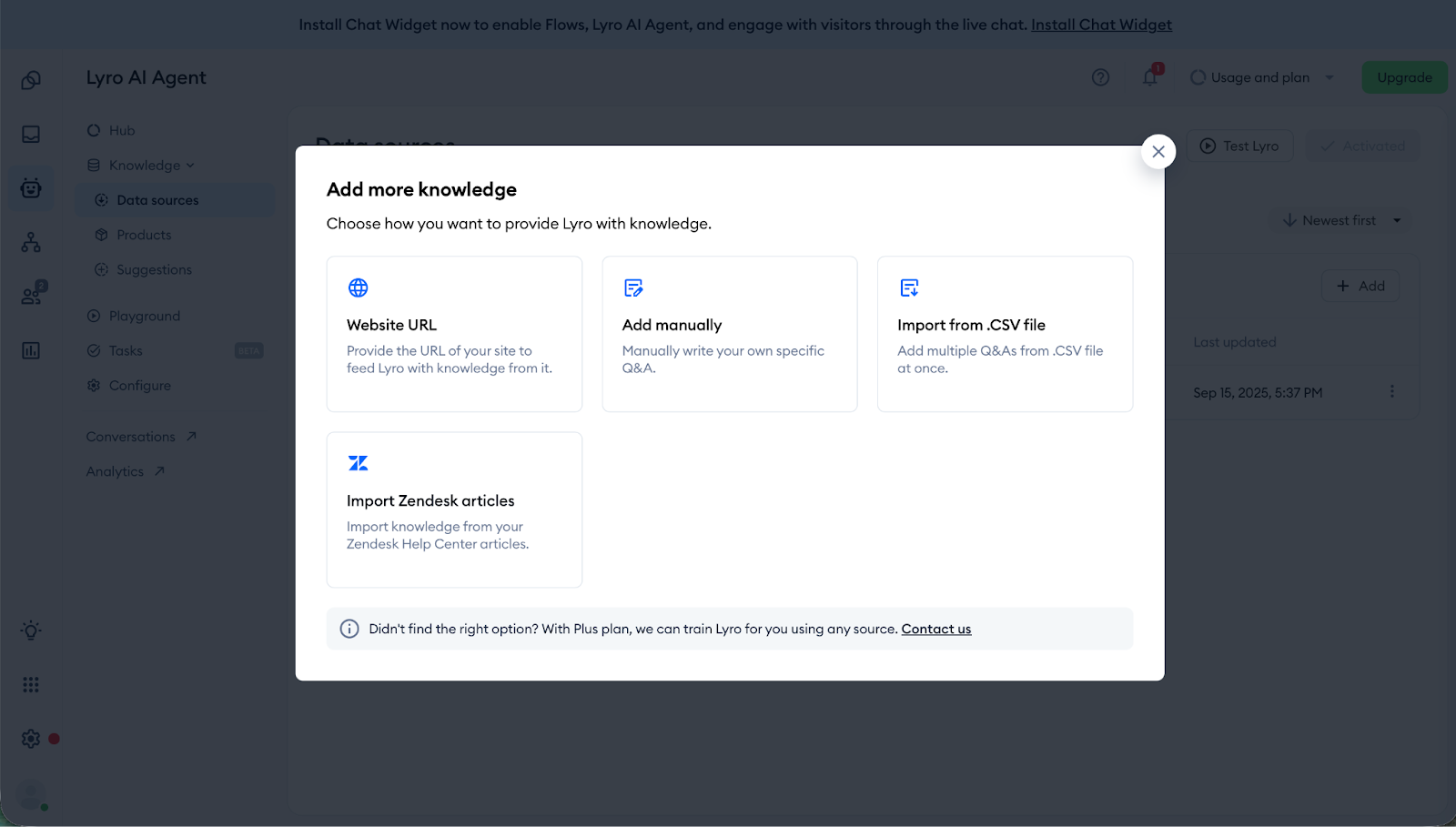 Tidio uses per-conversation pricing, both for its main plans and add-ons like Lyro AI Agent. This makes it easy to scale for small businesses, though it means the pricing can be hard to figure out. A small business that needs 150 human conversations and 150 Lyro AI Agent conversations, for example, would pay $169 per month; if they needed 500 Lyro AI Agent conversations, it would cost $409 per month.