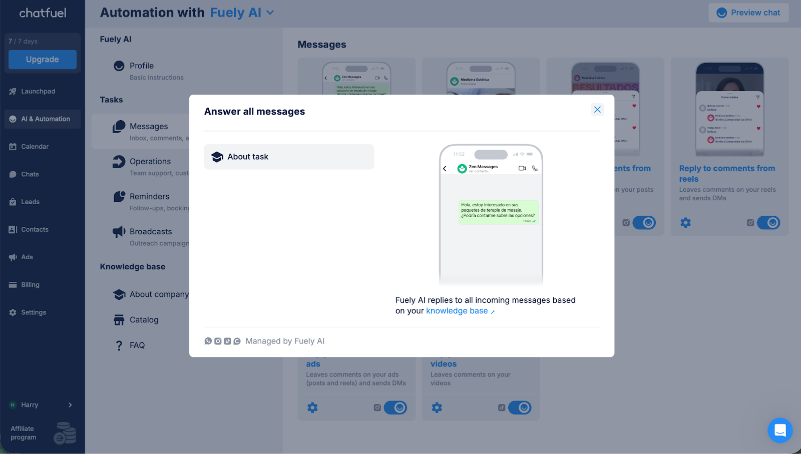 Manychat now includes more powerful AI features as part of the Manychat AI add-on; however, that costs $29 per month on top of your plan and isn’t as tightly integrated as it is on more advanced chatbot apps.
