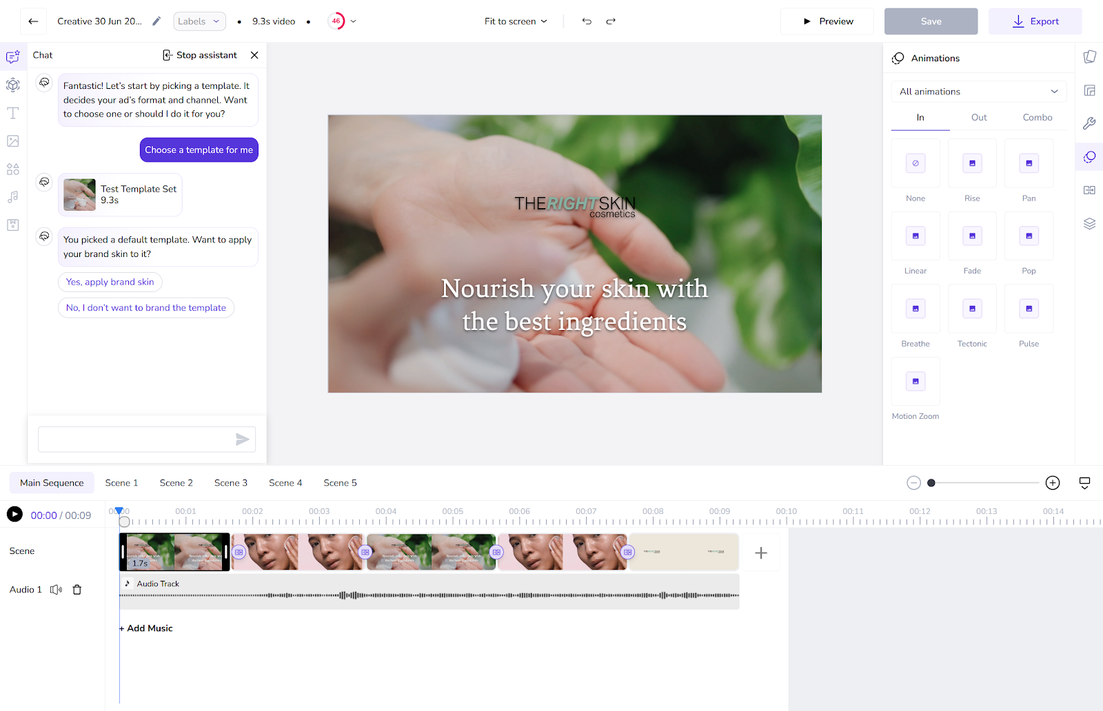 As a result, there’s not a lot of automation here, making this experience slower and more thoughtful. When starting a new creative, a chat assistant guides you through the process, covering all the bases from choosing the best template, nailing the details of your offering, and making the last few tweaks.