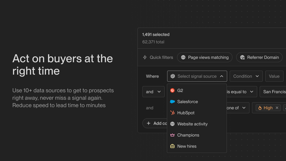 This tool proactively scans the web and public data to identify businesses that match your offering’s target pain points, even before intent signals emerge. With RevenueBase, you can collect information about the prospect company’s total number of accounts, deal sizes, and other key metrics. You can then prioritize high-value prospects and refine sales strategies for better revenue growth.