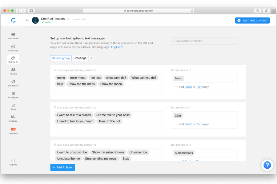 Chatfuel is a chatbot platform that enables businesses to automate communication and sales across social media channels.
