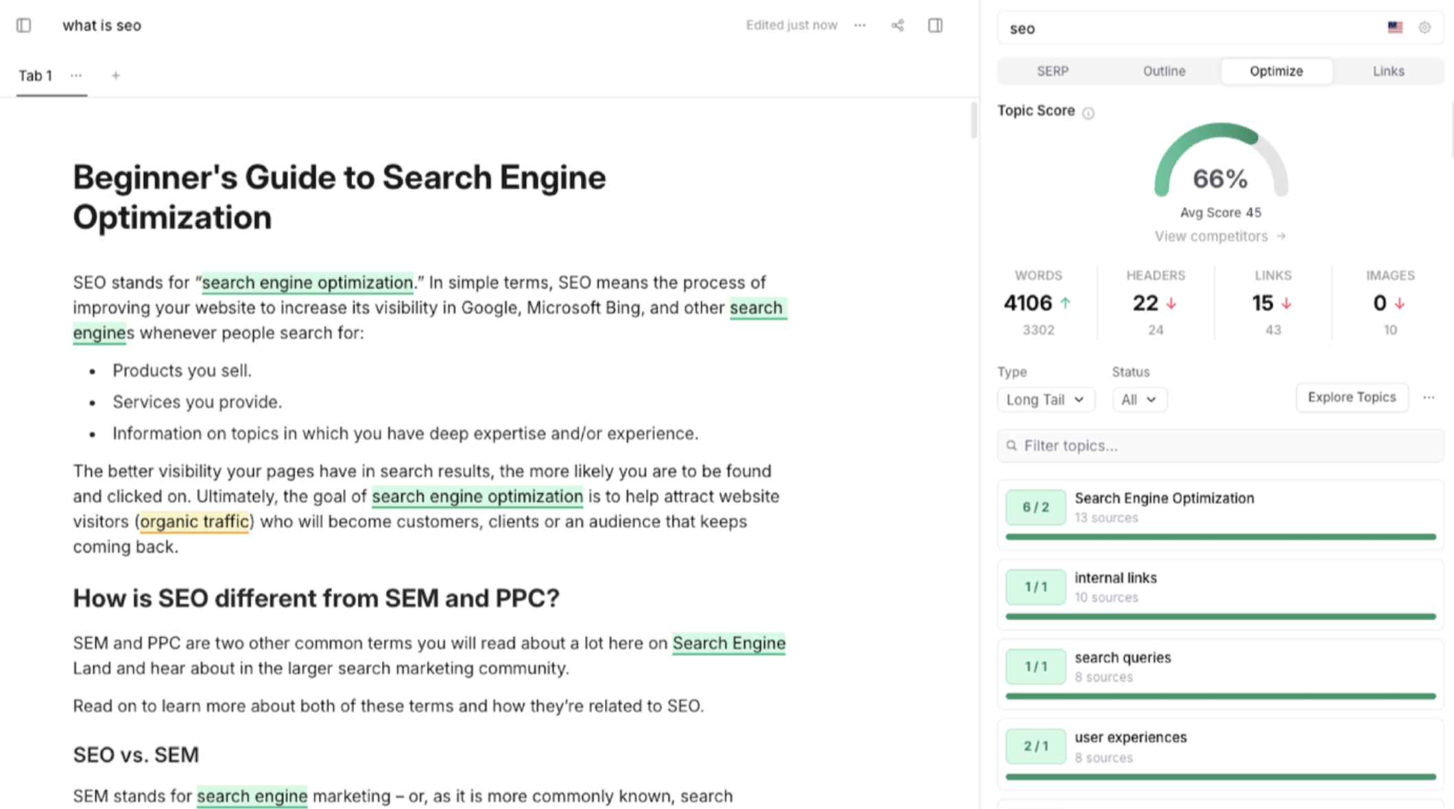- Content optimization: These tools can evaluate your content for readability, relevance, and SEO best practices, and suggest improvements.