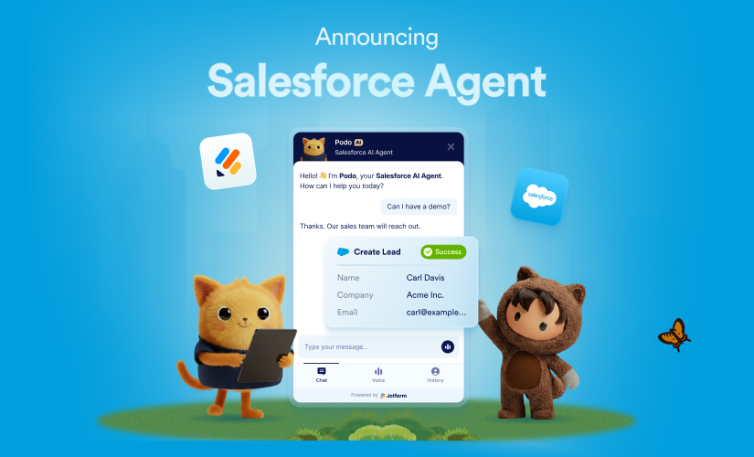 Salesforce Agent is an elegant, easy-to-use, and powerful solution, especially when combined with Jotform’s lineup of best-in-class AI tools, integrations, and workflow solutions.