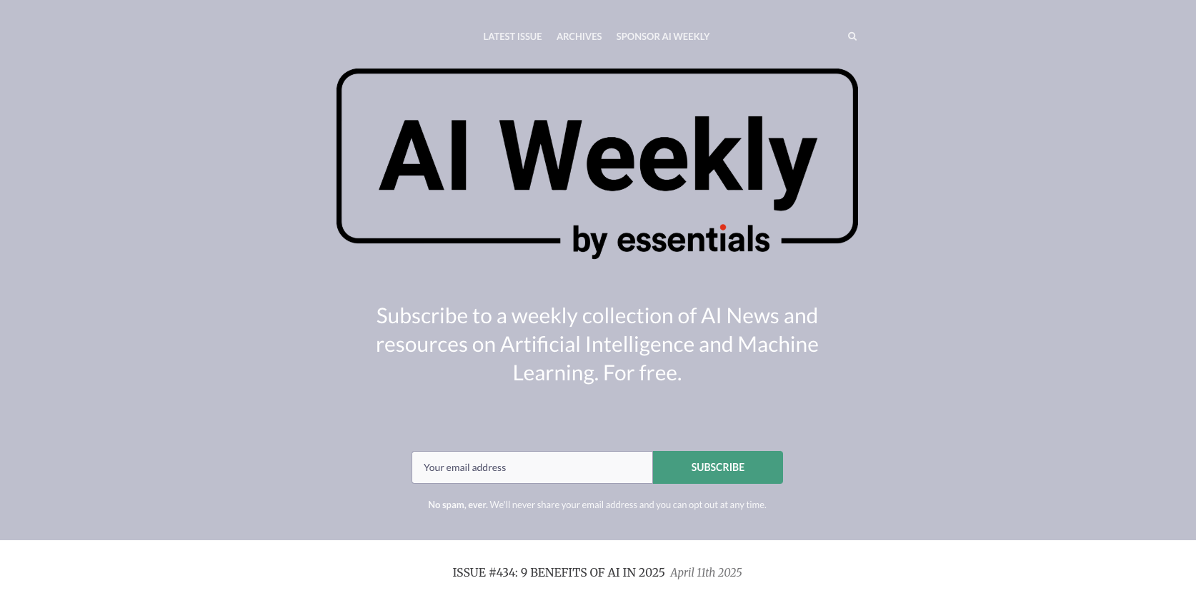 AI Weekly is a great resource for a comprehensive weekly roundup of AI news. It covers everything from machine learning and natural language processing to robotics and generative AI, making it ideal for professionals and enthusiasts who want a broad overview of the field.