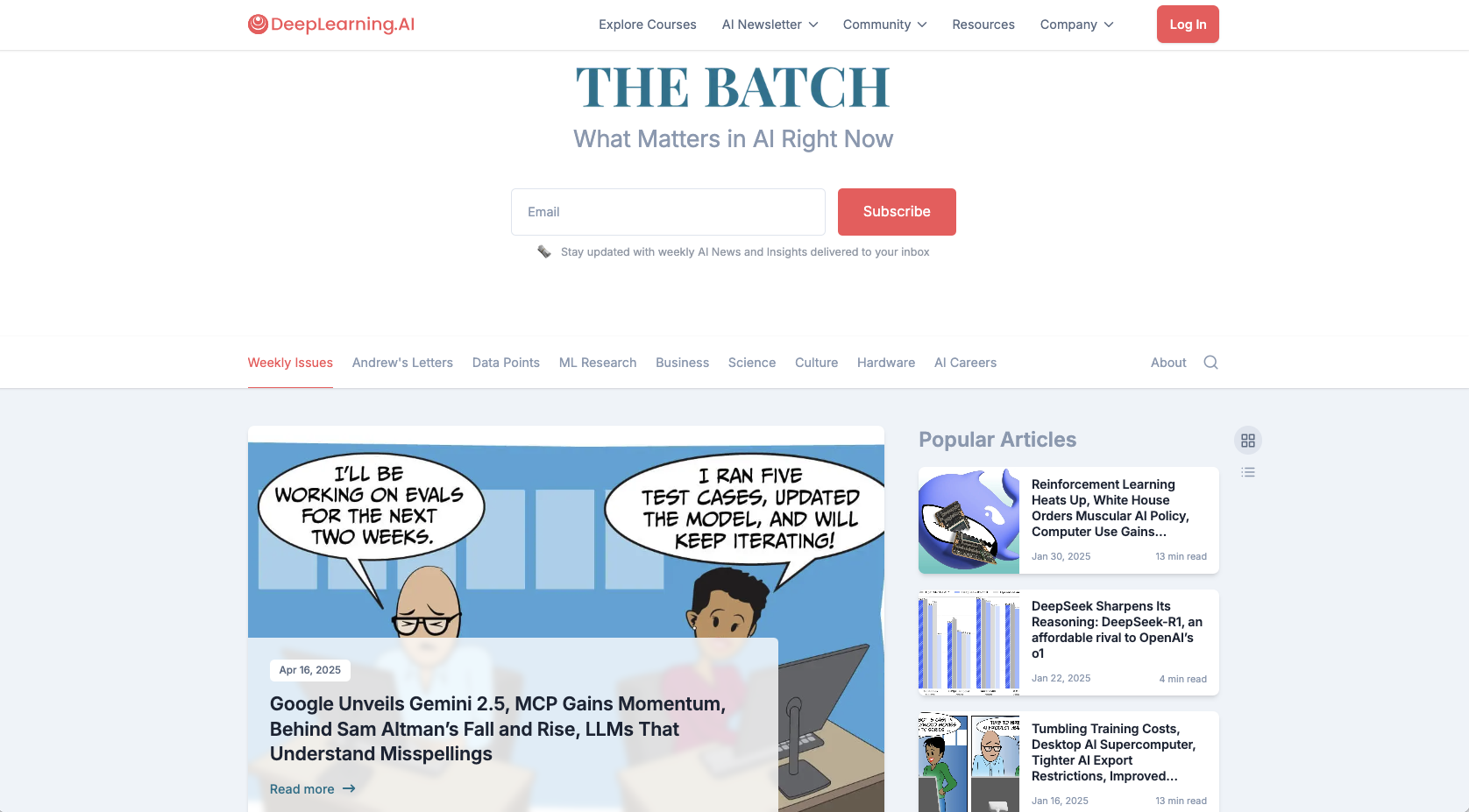 Created by Andrew Ng’s DeepLearning.AI, The Batch is one of the most authoritative AI newsletters. It delivers weekly updates on machine learning research, industry developments, and practical applications, making it a top choice for AI practitioners and researchers.