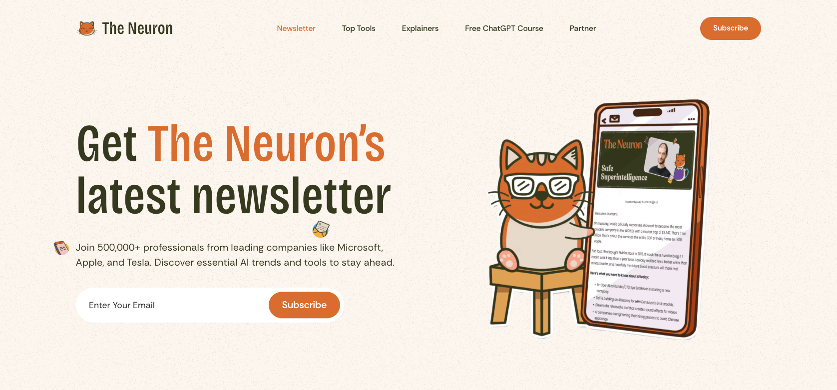The Neuron blends AI news, tools, and educational content with a touch of humor. Written by Pete Huang and Noah Edelman, this daily newsletter covers trending AI applications, research updates, and beginner-friendly explanations, making it a great pick for students and professionals alike.