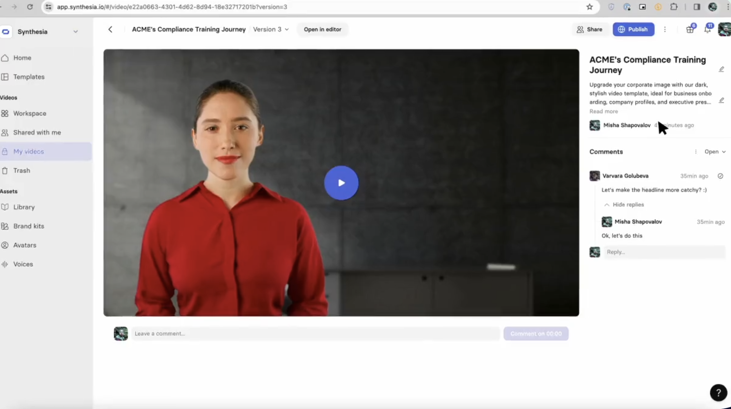 - Starter ($18 per month): Remove Synthesia logo, 140+ languages, ability to download videos