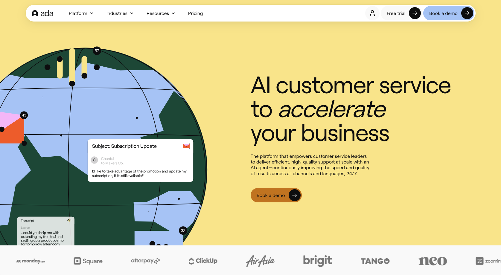 Ada features a free trial, though after that, you’ll have to contact sales for more pricing details.