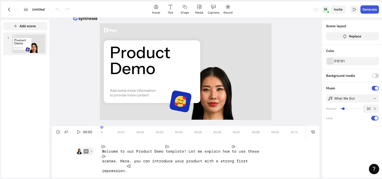 Synthesia is ISO 27001 certified and GDPR compliant. It encrypts all content at rest and in transit. Client videos and scripts are not used to train public AI models, and enterprise accounts can use SSO for secure authentication.
