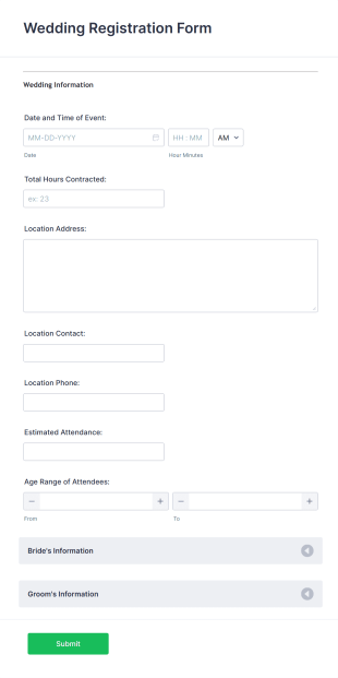 This AI Agent collects a variety of data points, including event dates, total hours contracted, location details, estimated attendance, and personal information from guests such as names, addresses, and contact information. By utilizing conversational data collection techniques, the agent ensures that all necessary information is gathered in an engaging manner, making the process more enjoyable for users. These features can also be customized to align with specific wedding themes and preferences.