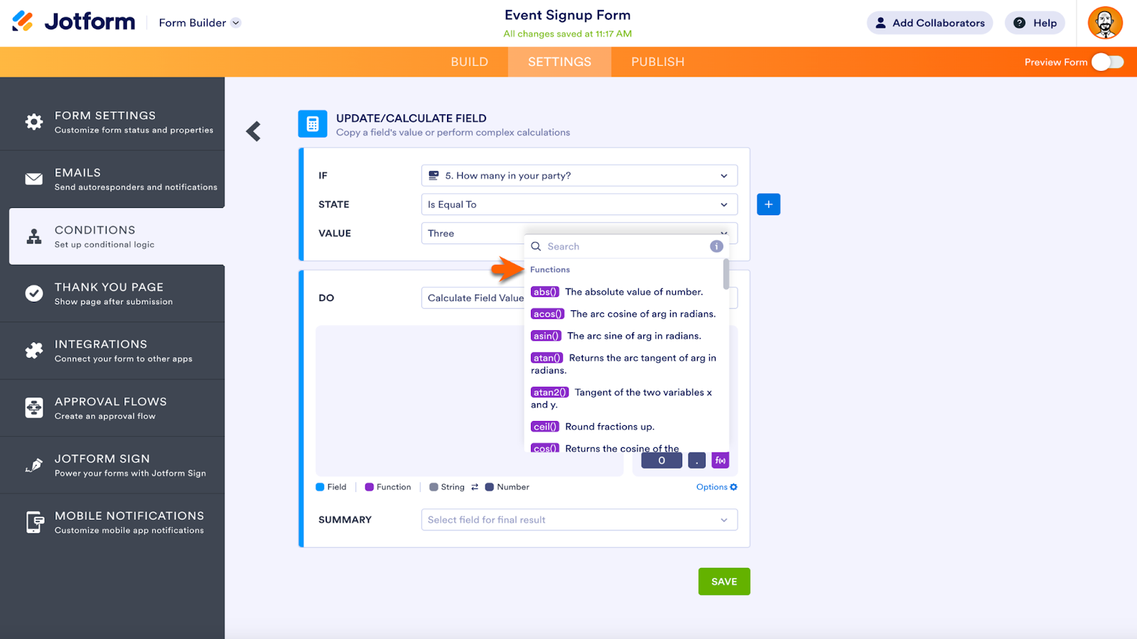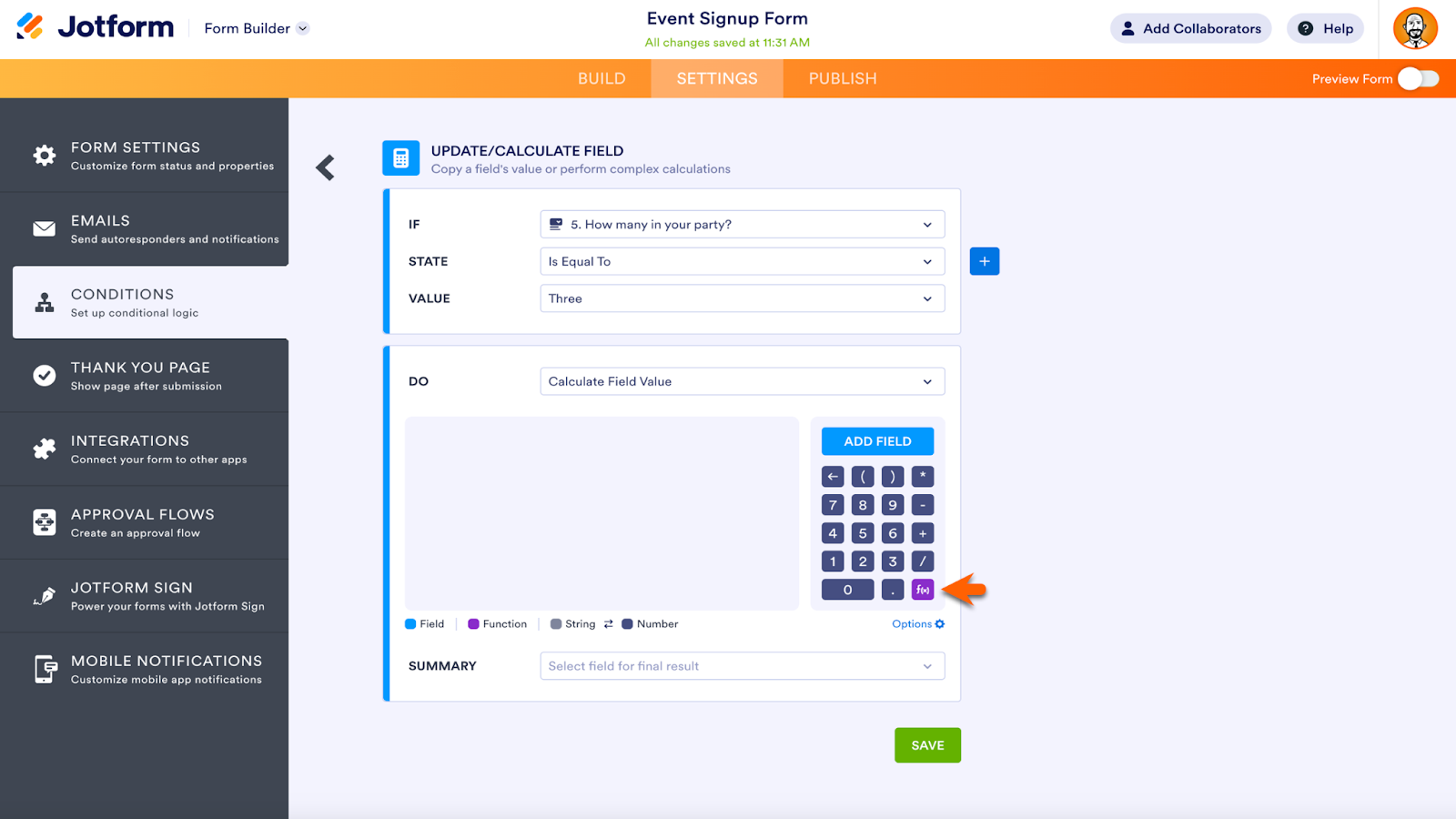 Setting conditions on your form is even more intuitive after Jotform’s latest update. Icons have been added to each conditional command, and advanced math equations have a new dedicated button designed for seamless access.