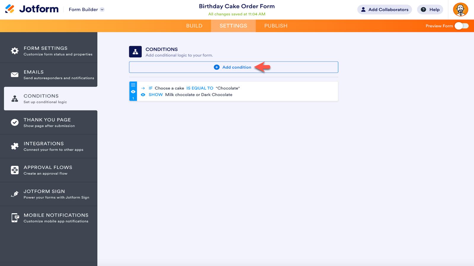 Jotform’s conditional logic may seem complex, but adding it to a form is a straightforward process.