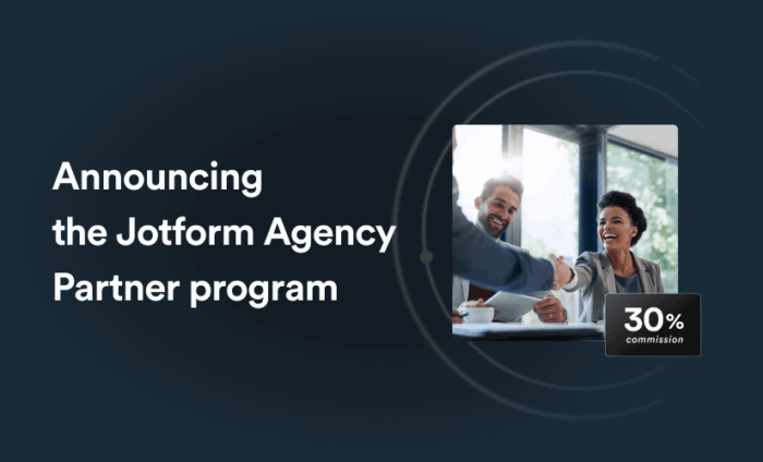 We are excited to announce the Jotform Agency Partner Program! With this new program, you can easily turn referrals into passive revenue. Are you ready to partner with Jotform and take your business to the next level?