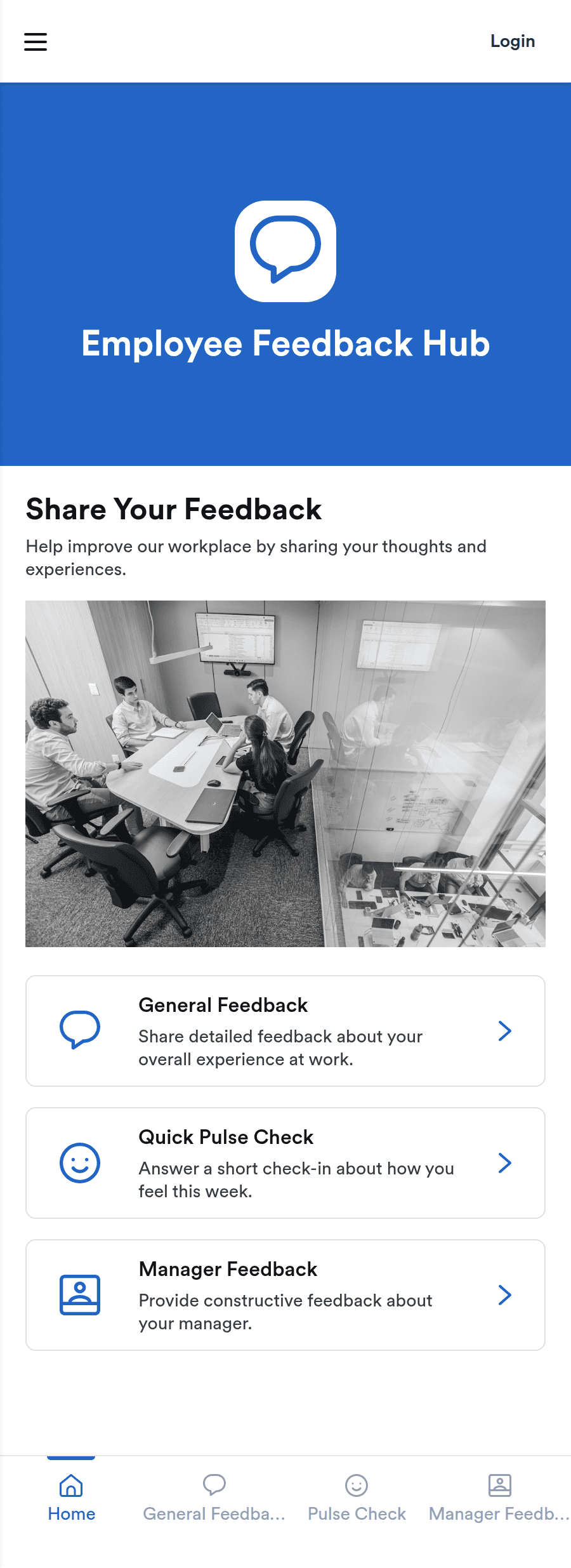 Collect general employee feedback, run quick pulse checks, and gather manager feedback in one Employee Feedback Hub App for HR and team leaders, with easy self-service access and a clear history of past entries.