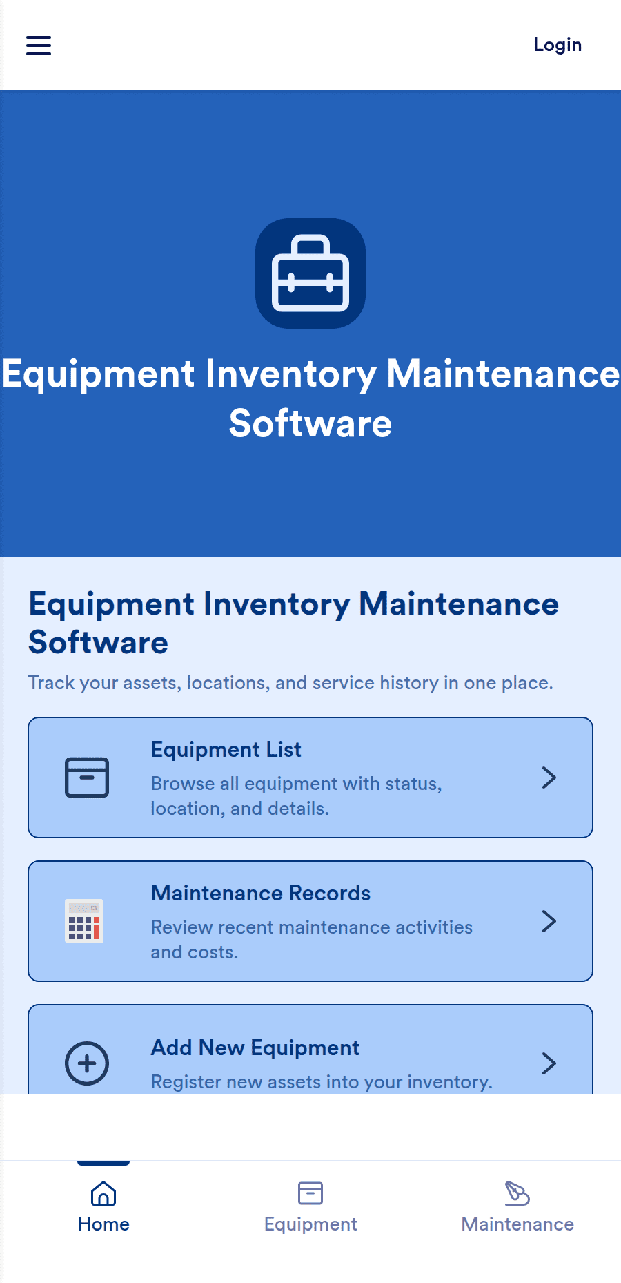 Equipment Inventory Maintenance Software